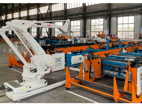 該生產(chǎn)線從原料的自動上料、自動集料排序、多根定尺裁斷、斜角裁斷、組合式縮徑、液壓滾絲、防偽打標(biāo)、讓壓管和組合墊自動旋裝、自動上母、鉆孔栽銷、蛇形沖壓、智能分檢、計數(shù)捆扎、成品碼垛實(shí)現(xiàn)了錨桿全自動化的生產(chǎn)模式。該條生產(chǎn)線彌補(bǔ)了傳統(tǒng)錨桿生產(chǎn)各個環(huán)節(jié)分離的缺憾,大大降低了勞動強(qiáng)度,提高了生產(chǎn)效率和產(chǎn)品質(zhì)量,實(shí)現(xiàn)了錨桿產(chǎn)品安全生產(chǎn)的需求,推進(jìn)了錨桿生產(chǎn)行業(yè)邁向全自動化生產(chǎn)的新時代。